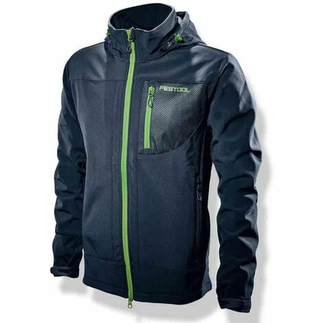 Breathable, wind and water repellent softshell jacket with micro fleece on the inside. The jacket has green decorative seams and a green Festool logo on the left upper arm. This is a great fan merchandise jacket.