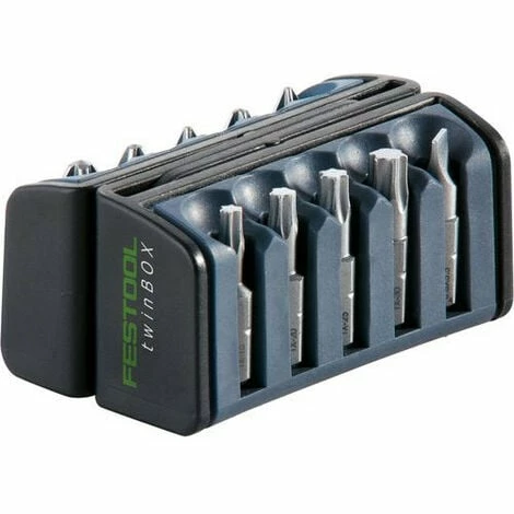 Festool BB-PZ twinBOX Pozddrive Bit 10 Piece Set – 496934 Another great item from Festool. Whenever you need to change your driver bit and you don’t want to go through you toolbox – twinBox comes handy. Box splits in two and can be easily attached to your trouser pocket or belt so you can reach it with one hand. TwinBox does not have any sharp corners and bits are easy to remove and insert again. Set contains: • 3 x PZ 1 bit • 4 x PZ 2 bit • 3 x PZ 3 bit