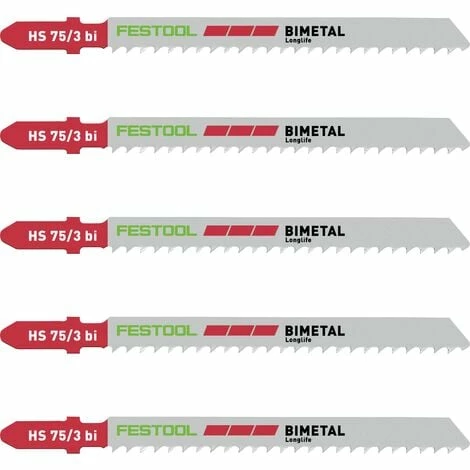 Festool Plastics Jigsaw Blade HS 75/3 BI/5 (5 Pack) (204336)Plastics Solid Material.Length of cutting blade: 75mmPitch: 3mmMax. workpiece thickness: 30mmFor outstanding results in plastics with high-grade bimetal.For the toughest demands such as plastic solid material and fibre-reinforced plastics.What’s in the box?5 x Jigsaw Blade HS 75/3 BI/51 x Jigsaw Blade Case