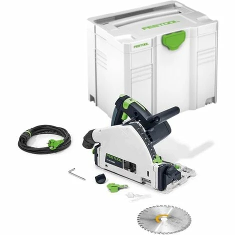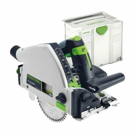 Festool TS 55 REQ-Plus GB 110V Plunge Cut Saw – 561554 The best plunge-cut saw we have ever built. Slimline housing for maximum flexibility and close proximity to the wall (12 mm) Angle adjustment with undercut function from -1 to 47° Transparent sliding viewing window provides a good view of the scribe mark and saw blade Guide wedge for safer work and simple positioning in existing joint Main areas of use Precise circular in materials up to 55 mm thick Cutting interior doors to length using guide rail and circular saw Manufacturing expansion joints in parquet flooring and false joints Cutting chipboard to size Cutting and processing plasterboard