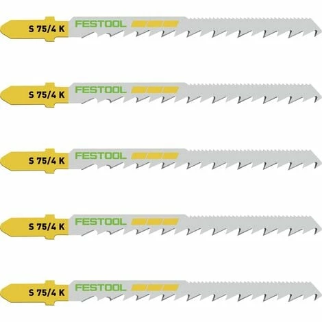 Festool Wood Jigsaw Blade S 75/4 K/20 (20 Pack) (204266)Wood Curves.Length of cutting blade: 75mmPitch: 4mmMax. workpiece thickness: 30mmFor outstanding results in wooden materials with high-grade HCS tool steel.Ideal for curves – even extremely tight radii are possible.What’s in the box?20 x Jigsaw Blade S 75/4 K/201 x Jigsaw Blade Case